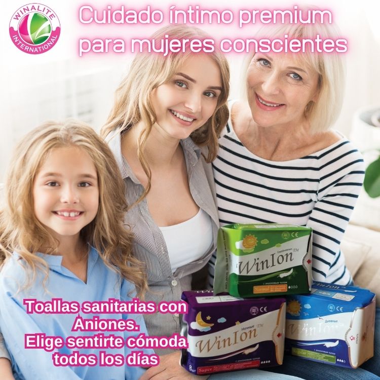 La cinta de las Toallas Sanitarias “WINION” pueden emitir 5.800 iones negativos por cc, para inhibir con eficacia la supervivencia y proliferación de bacterias negativas y virus, que son las principales causas de los problemas femeninos. Casi todos los tipos de inflamaciones íntimas femeninas son causados por las bacterias que necesitan de aire para vivir. Cuando la cinta de las Toallas Sanitarias “WINION” emite una alta densidad de iones negativos, genera abundante oxígeno ionizado, haciendo imposible la vida anaeróbica, promoviendo aún la transformación biológica de enzimas y equilibrando el pH de la vagina.